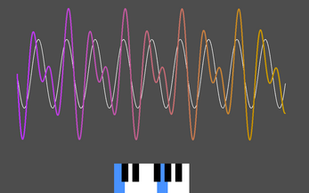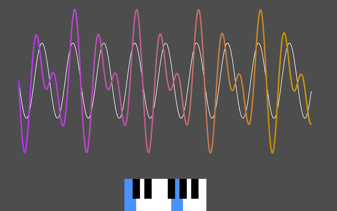 Instructions - Bottom two layers of keyboard correspond to piano keys. Guess the combination of 2 notes that match up with the waveform shown in white!